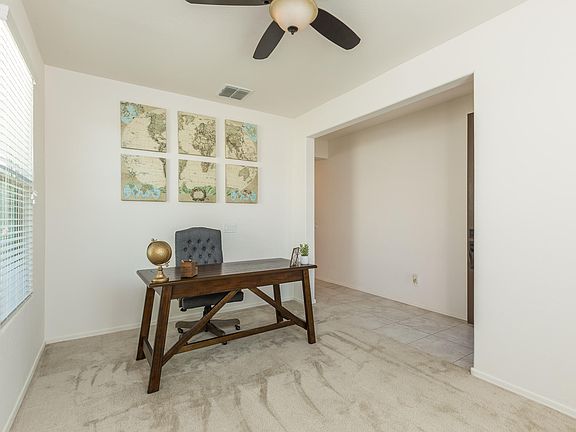 Step into this beautiful 3 bedroom 2 bath retreat that lies within the private gated community of Eastmark's Innovation Park. This prestigious neighborhood has access to all of Eastmark's famed amenities but with its own exclusive flair. This Meritage-Bacall floor plan steals the show with an open concept living area, private study, gourmet kitchen with granite counters and stainless steel appliances. Your spacious owners suite, shower, soaking tub, and walk-in closet set this floor plan a step above the rest. Your backyard is complete with your pavers extending beyond your patio into a cozy seating area fit for a picnic while you enjoy the company of family and friends. All of this in a home BUILT IN 2017!