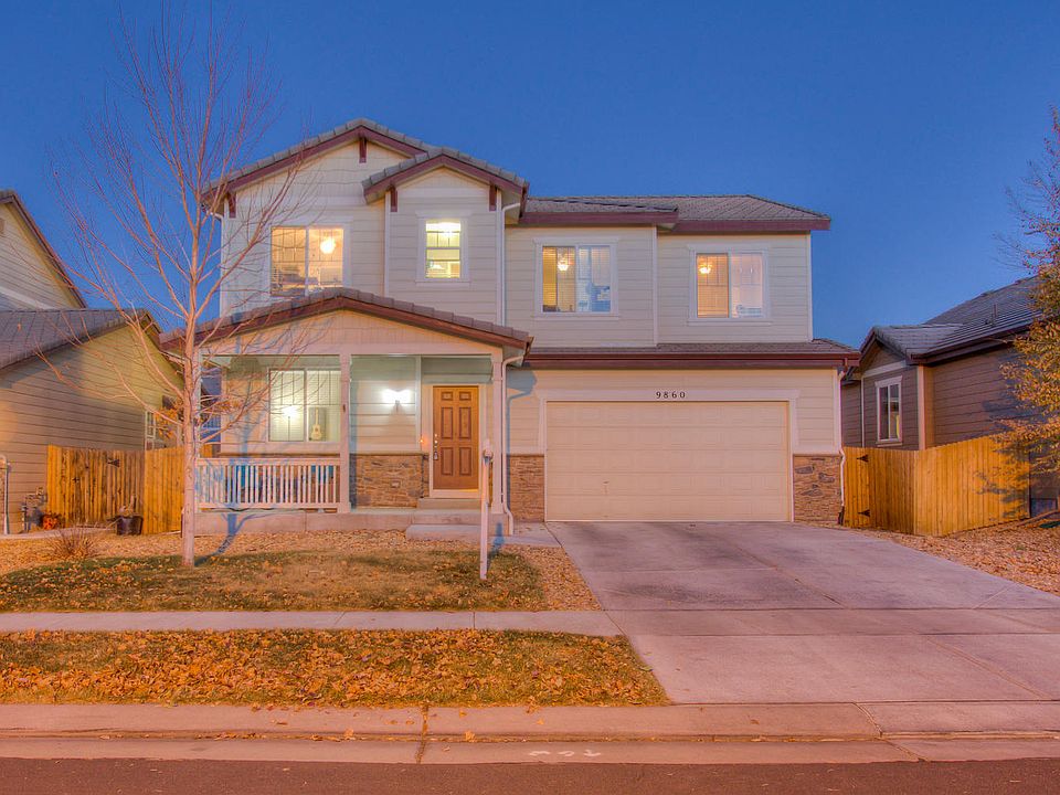 Don't pay to build when you can have this stunning 2012 Richmond home full of upgrades with all the space you need and then some. Beautiful dark wood floors greet you in the foyer. Here you will find french doors to an office that overlooks the covered front porch. As you continue on the main level it opens up the to the family room accented by an elegant fireplace, and the completely upgraded kitchen. You will love the granite, stainless steel appliances, double oven, walk-in corner pantry, beautiful tile backsplash and big dining area. Another huge family entertaining area can be found upstairs in the loft. The master suite, 3 bedrooms and another full bath are also located upstairs. But that's not it! You have yet another family rec room in the finished basement plus a 5th bedroom & bath. This gives you 3 family/entertaining/rec room areas plus an office & 5 bedrooms! Let your dreams take flight! Upgraded covered back patio. Around the corner to park/schools. Min to DIA, 470, 85, 76