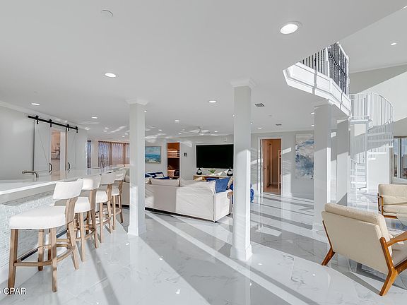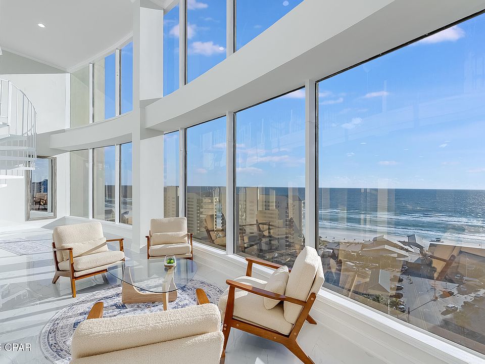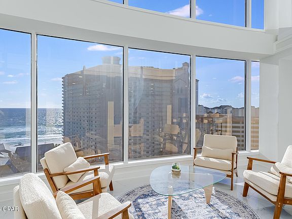 Step into a world of modern coastal luxury with this fully furnished, turn-key Gulf-view residence, built in 2025 and designed to impress at every angle. This expansive 2,882 sq ft, 5-bedroom, 5-bathroom condo at Laketown Wharf showcases a clean, bright, almost futuristic aesthetic with crisp white interiors, soaring floor-to-ceiling windows, and wide open living spaces that feel airy, elevated, and effortlessly refined. Natural light pours in through dramatic walls of glass, allowing the turquoise waters and horizon of the Emerald Coast to become the home's most stunning feature.