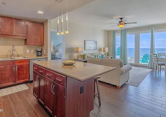 Providing over 1,260 square feet and accommodating up to 8 people, this unit at Laketown Wharf features the largest layouts on the Beach! For the best Panama City Beach resort accommodations and value, Laketown Wharf is your gateway to fun. Laketown Wharf resides between an expansive private lake and the Gulf of Mexico right in the heart of Panama City Beach's best dining, shopping, and entertainment opportunities. Whether you're booking a family vacation or a relaxing coastal retreat, Laketown Wharf has all the amenities and activities suited to fit your needs. This vacation rental features: Master Bedroom: King-sized bed (sleeps 2) Second Bedroom: Queen-sized bed (sleeps 2) Nook Area: Twin bunk beds (sleeps 2) Living Area: Sleeper sofa (sleeps 2) The living area showcases panoramic views of the "World's Most Beautiful Beaches" through full-size glass windows and doors. A fully equipped kitchen and dining area cater to culinary needs. Maximum occupancy is 8 guests This expansive 3-bedroom, 2-bathroom unit on the 16th floor offers stunning Gulf views and ample space, making it a superb choice for those seeking value and comfort. The master bedroom boasts a King-sized bed, private bathroom with double sinks, a walk-in shower, and a large soaking tub. Glass doors provide access to the private balcony, offering unparalleled vistas. Laketown Wharf provides amenities that appeal to all age and budgets including a fitness center, five refreshing pools, a large freshwater lake, 52,000 sq. ft. of lakefront boardwalk, a kid's playground and easy access to the World's Most Beautiful Beaches. The resort includes Laketown Market, Restaurants, Spa tub, putting green and much more! Just steps from entertainment, food, and drinks. Come experience a great vacation on the beach with your family. You will love the surroundings and convenience. Enjoy the following: Fitness center, Putting green, Gazebos, Pools, Spa tub, Security, and Restaurants. Onsite you'll find five pools (one being a kiddie pool with slides). Whether it's strolling on the beach, snorkeling, parasailing or fishing, you'll find opportunities close by to enjoy everything there is to do in, under, above, or on the water. An onsite fitness center with gulf views offers users state-of-the-art equipment including a steam room and a sauna: the best workout facility in town. Laketown Wharf's amenities are second to none, boasting a bar and grill by the main pool, convention facilities that offer year-round events and entertainment, onsite restaurants that offer a variety of quick snacks, including gourmet lunches, fresh salads, buffet dinners and more. *Amenities include five pools, a zero entry, a partially shaded one, island pool, rooftop with amazing views and a kiddie pool and two hot tubs. *There is a gulf facing fitness center offering weight training and cardio workout. *Three restaurants offering seafood, chicken, tacos, drinks and more *Ice cream and candy store onsite *A nightly water fountain and light show that can be seen from the boardwalk and from the balcony. *On site security *A 52,000 square foot boardwalk *Putting green *Outdoor gazebos *Laketown Market for Breakfast, Lunch and Beach Essentials *Free Covered Parking. Guests enjoy secure covered parking in the onsite parking garage and a covered walkway to the building, with access to several large modern elevators. All Laketown guests are supposed to park in the garage only. Seascapes 30a orders and pays for the guest's parking passes on the day of your arrival (maximum of two cars are allowed per condo). We will send the parking reservation number to you on check-in day. Once you arrive at the resort, utilize the 15-minute parking area so you can head to the front desk (guest registration) and retrieve your two parking passes along with your amenity bands. Then return to your car(s) and park in an appropriate long-term spot. Parking passes need to be visible on your vehicle's dashboard for the entirety of your stay. Base rent: $1950 per month Utilities: $250 per month One time parking/Amenity fee of $100 One time clean fee of $275 Tourist Taxes: in addition Credit card processing fee : In addition Final terms are subject to final approval of the owners of the unit Term: Latest we can rent the unit would be March 8th Date available: Immediately