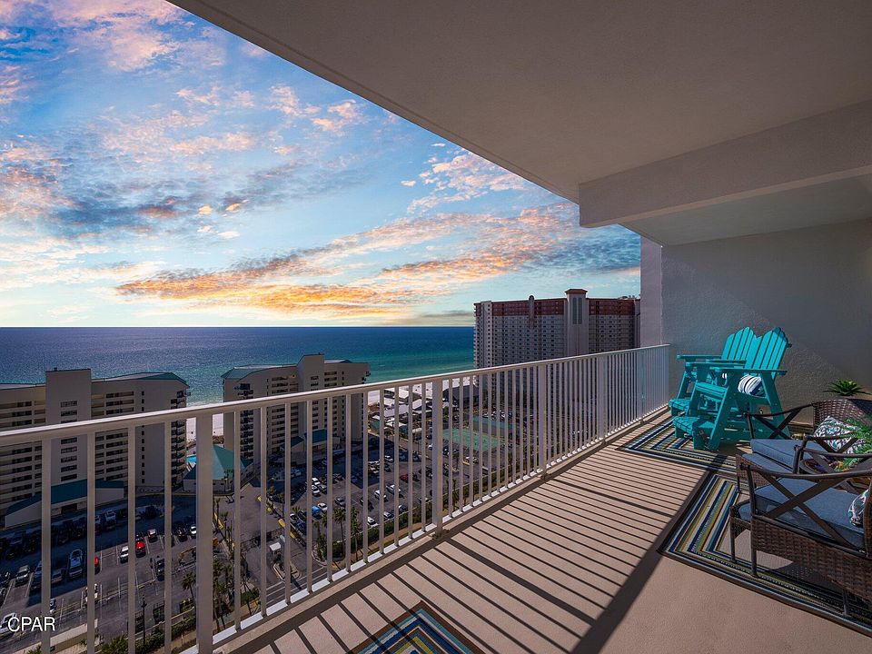 CURRENTLY UNDER CONTRACT, SELLER WILL CONSIDER BACKUP OFFERS. Welcome to your dream beachfront getaway at Panama City Beach! Nestled on the 17th floor, this stunning condo offers breathtaking panoramic views of the glistening Gulf waters and sugar-white sands, providing an idyllic backdrop for your coastal retreat. Step inside to discover a meticulously designed space featuring 2 bedrooms and 2 baths, offering comfort and luxury. The open-concept layout connects the living, dining, and kitchen areas, creating an inviting atmosphere perfect for entertaining or simply unwinding after a day of sun-soaked adventures. The kitchen boasts sleek granite countertops, enhancing style and functionality, while modern appliances ensure effortless meal preparation. Imagine sipping your morning coffee or enjoying a sunset cocktail from your private balcony, soaking in the sights and sounds of the ocean breeze. Beyond the boundaries of your condo, indulge in the array of resort-style amenities at your fingertips. Challenge friends or family to a game of tennis on the on-site court, practice your putting skills on the green, or maintain your fitness routine in the well-equipped gym. With 5 pools to choose from, including a heated pool that's open seasonally, every day promises endless opportunities for relaxation and rejuvenation. Direct beach access allows for seamless transitions from poolside lounging to sandy shores, where you can bask in the sun, take a dip in the waves, or stroll along the pristine coastline. For those seeking culinary delights, the ground level of the facility offers convenient access to a variety of restaurants, ensuring that delicious dining options are never far away. With a charming boardwalk leading directly to the beach, you'll immerse yourself in the vibrant coastal atmosphere from the moment you arrive. Whether you're seeking a peaceful escape or an action-packed adventure, this condo on Panama City Beach offers the perfect blend of luxury, convenience, and natural beauty, promising memories to last a lifetime.