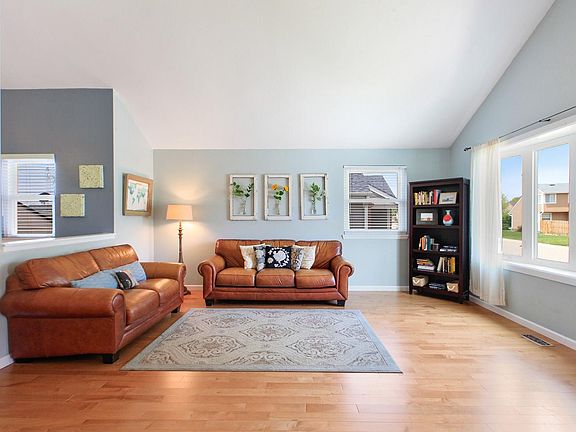 WOW, walking distance to both the pond(s), and Stanley Lake, with great paths to the Fire Fighter Park & Woodrun park, or the community pool. This home has a great location with stunning hardwood floors running from the front door through the kitchen. The great room feel is inviting right as you walk in with vaulted ceilings, and the floor plan is perfect for entertaining. Also, the extra space in the basement gives ample room for plenty of options along with the covered patio. This home should go quickly!