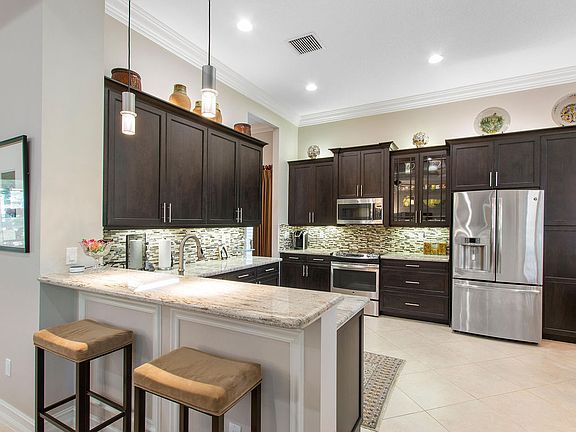 Gorgeous Alexandra model is located on a private, oversized lot with an extended, screened patio. This bright, open floor plan features tons of upgrades including kitchen counter tops, cabinets and appliances, 20x20 tile, additional recessed lights, new 17-SEER Trane A/C system, ''California Style'' closets, accordion shutters and much more. Please call for full list of upgrades. HOA Fee includes lawn care, alarm monitoring, cable and internet.