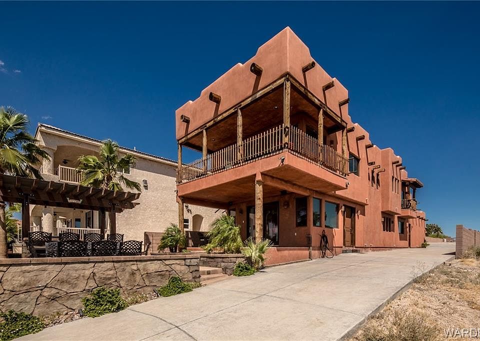 Custom home ready for enjoyment with an outside kitchen. Authentic Santa Fe architecture w/smooth stucco finish & distressed beams to tumbled travertine , chiselled edge granite,Fiberglass clad wood windows & doors,knotty alder cabinetry & doors,peeler poles,custom faux finishes,jetted master tub,wet bar,beehive fireplace,sound & security wired. our own beach,15' wide boat launch.