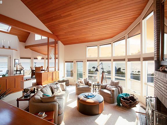 INDULGE in BEACHFRONT LIVING! Grounds of this OCEANFRONT property is nothing short of AHHHMAZING!Detached 2 car garage with studio. Detached 4 bay heated garage w/RV storage and studio upstairs. Main home is beautifully designed Cape Cod home of clear-cut cedar cabinetry, hardwood floors, 2 family rooms. 19' vaulted fir ceilings! Over 5,000 sq ft of combine living. Easy PRIVATE BEACH ACCESS.All on 1.58 useable acres! VIEWS INCLUDED!