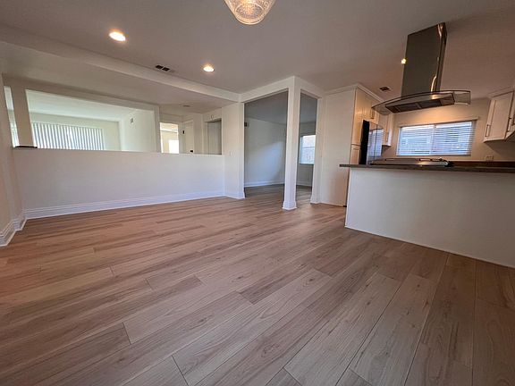 This beautiful updated, open concept 4 bedroom, 2 bath home is located minutes from the beach and features a spacious eat-in kitchen with update stainless steel appliances, tons of counter space and plenty of storage. There is an attached 2 car garage with access from the kitchen. There is also a separate room off the kitchen that can be used as either an office space, playroom or separate dining room. The kitchen opens into the living room with a sliders to the backyard and a fireplace . The primary bedroom has an en suite bathroom and is conveniently separate from the other 3 bedrooms. The additional bedrooms are bright and share the second full bathroom. The home has new hardwood floors throughout, plenty of parking and the backyard has direct access to the green belt behind the home which offers a park.
