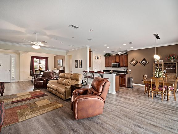 Johnstown model 3+den/2/3/ with fabulous yard for privacy and space. So much of this home has been updated; New HVAC 2018, new flooring 2018, new master shower and granite in baths 2017. Additionally, insulated garage door, upgraded cabinets throughout, quartz countertop in kitchen, ceiling fans and lighting, master closet customized 2014, lanai and front entrance tiled 2015, pocket doors in master bath, master closet and hall bath, custom lighting and surround sound in great room, central vac system, crown molding and so much more. This one deserves a good long look especially if you are looking for a move in ready home with landscaping, great yard and all the upgrades finished and ready for your arrival.