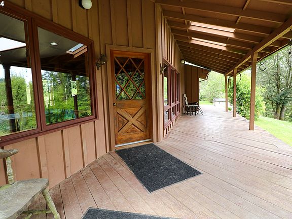 Nestled in the coastal mountains in SW Oregon, this private gated 17 acre property features a secluded, unique, well-built, and well-maintained home on a hillside with beautiful views of the Coquille River Valley. The 2Bd/2Ba home features exposed cedar beams, large front and back covered porches, an open floor plan, an artisan staircase, and a hot tub perfect for starlight soaks with a glass of wine. The extensive fenced yard features many mature fruit trees and an abundance of native rainforest plants. Mature mixed hardwood, cedar, and fir woodlands provide a rare tranquil retreat.Downhill from the home is a large, 26x40, two-door RV shed with plenty of shop space, as well as a greenhouse, 17x13, and a terraced garden with multiple beds and established berries. There are many storage buildings, 400 sq ft art studio, a pantry, a dry room, and several animal shelters, one shelter 10x20, another is 24x34, and hay storage areas. Offers flexibility of two water sources, submersible pump in the river and a well, and Pura water filtration system. Also on site is a fully enclosed elaborate chicken coop.Both the larger city of Roseburg on I-5 and the world-class golf destination Bandon Dunes are close enough for day trips. Property has easy access to the town of Myrtle Point. The completely fenced 17 acres of cross-fenced pasture and forest is a true sanctuary from the stress of city life. Songbirds greet you every morning, and every day brings wildlife sightings.