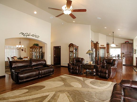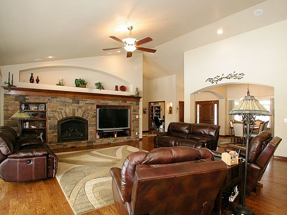 "Like brand new" gorgeous upgraded open concept stone & stucco rancher on a fully landscaped 1/2 acre lot with 4 car tandem attached garage + 2 car detached garage with shelving, work bench, separate cement driveway & cement RV parking area - Home is in perfect condition & shows like a model - gourmet kitchen with slab granite counters & huge island, cherry stained 42" maple cabinets with crown molding, hardwood floor, vaulted ceiling & sunny eating nook - vaulted "great room" with hardwood flooring & full wall stone faced gas log fireplace, surround sound & built in entertainment center - main level office with divided light glass french doors - huge master suite with 14 x 9 walk in closet & elegant 13 x 11 with 5 piece master bath with jetted soaking tub & oversized walk in shower