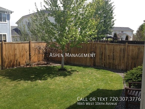 4 Bed / 2.5 Bath home with stainless steel appliances, granite bench tops & hardwood floors in the kitchen. Open plan kitchen / dinning / living room with vaulted ceilings, gas fire place and an additional sitting room that gets plenty of sun in the mornings. Forced Air Heating and Central AC. Primary bedroom has a separate walk in closet and 5-piece primary bath. All three bathrooms are updated with granite countertops. Finished basement with space for a 4th bedroom and flex space that's perfect for a hobby room, home gym or just about anything else. Landscaped fenced backyard & patio and a 3 car garage, plus a storage shed, round out this lovely home. Close proximity to shops & restaurants. Easy access to Boulder or Denver on I-36. Absolutely no smokers. Sorry no cats but ask about our dog policy. Portable Tenant Screening Reports (PTSR): 1) Applicant has the right to provide Aspen Management with a PTSR that is not more than 30 days old, as defined in 38-12-902(2.5), Colorado Revised Statutes; and 2) if Applicant provides Aspen Management with a PTSR, Aspen Management is prohibited from: a) charging Applicant a rental application fee; or b) charging Applicant a fee for Aspen Management to access or use the PTSR. If Applicant provides Aspen Management with a PTSR: a) the PTSR must be available to Aspen Management by a consumer reporting agency/third-party website that regularly engages in the business of providing consumer reports; 2) the PTSR must comply with all state and federal laws pertaining to use and disclosure of information contained in a consumer report by a consumer reporting agency; and c) Applicant certifies that there has not been a material change in the information in the PTSR, including the Applicant's name, address, bankruptcy status, criminal history, or eviction history, since the PTSR was generated. 3 Car Garage Back Patio Ceiling Fan Fenced Back Yard Granite Countertops Range Storage Shed Washer/Dryer Hookups
