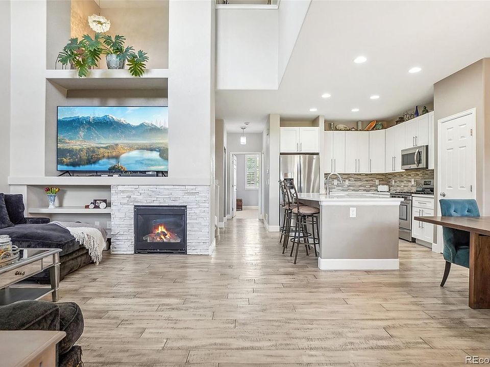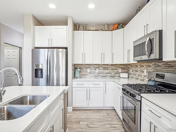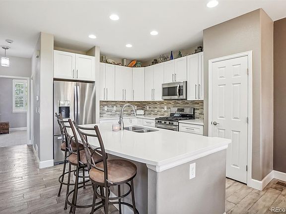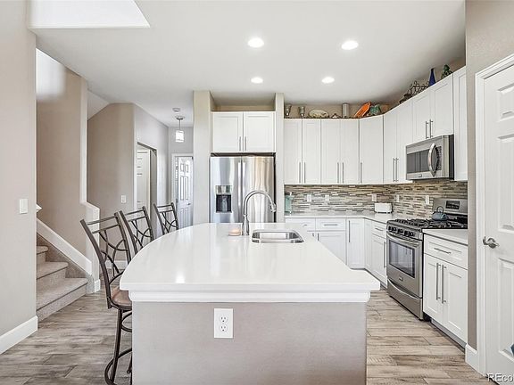 Welcome home to your spacious updated home in highly desirable area of Littleton! Imagine walking up to breathtaking views of mountains and the gorgeous Colorado sunsets. This beautifully maintained property features 3 bedrooms/4 bathrooms, boost 2 ensuites with one on main floor and the other on 2nd floor. Planation shutters throughout, brand new carpet, updated lighting, Hemingway flooring are just a few upgrades to this already gorgeously designed home. A finished basement with a large family room or personal gym that then walks out to an oversized heated 2 car garage. The spacious layout creates an inviting atmosphere throughout the entire home. The kitchen is equipped with a gas stove, plenty of cabinets, quartz countertops, large island with additional seating, and pantry. Dining room sits right off the kitchen which leads to the planation covered patio doors opening up to the private enclosed patio perfect for grilling and relaxing. Living room has vaulted ceilings with gas fireplace giving a grand but cozy feel. Laundry room is conveniently located on main floor next to a powder room perfect for guest. Main floor bedroom has walk in closet with ensuite bathroom equipped with well designed tile shower with a bench and niche. Upstairs you will find additional 2 bedrooms and 2 bathrooms. Primary bedroom has high ceilings with walk in closet and ensuite bathroom with large soaking tub, separate tiled shower with bench and niche, double vanity sink and private toilet room. The other bedroom has additional space to design with your personal touch and full bathroom located right out the doorway. Whether you're enjoying a quiet evening in front of the fireplace, hosting a lively gathering in the open concept kitchen, or relaxing out on your private patio this home truly has it all! Conveniently located close to schools, shops, restaurants along with easy access to the the mountains.  Don't miss out on the this opportunity to own this lovely home sweet home!