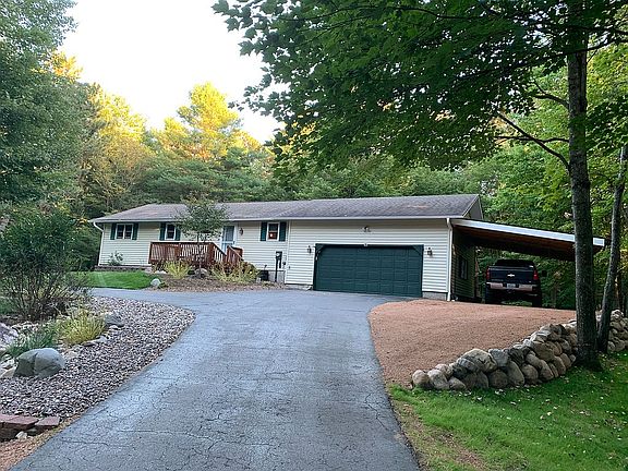 Fully remodeled and updated ranch home in beautiful neighborhood, minutes from town and near the Bearskin Trail for hiking, biking and snowmobiling. Numerous updates over the recent years including new septic, well, hot water heater and windows. Interior of home has been completely remodeled with new kitchen appliances. Added bonuses to the home include a screened in porch, front and rear decks, multiple patios, carport, 12’ x 20’ barn style storage shed, 30’ x 40’ heated detached garage with new 9’6” overhead door, attached 2 car garage, large parking area for your RV, and an amazing insulated and heated tree house with power for the kids (or the grown up kids). Upper level consists of kitchen, bathroom, 2 bedrooms, living room and dining room. Lower level has an additional bedroom with egress window, bathroom, wet bar, family/rec room, laundry room and furnace room. There are multiple heating sources in the home including forced air with central air, a high efficient wood fireplace in the walk out basement, and a natural gas fireplace in the main level living room. The home has a security system and Charter high speed cable/internet services available. We have loved this home for 16+ years and it is time to let another family enjoy it as well. Come see this amazing home for yourself. Please call or text 715-614-4334 to set up an appointment.