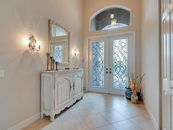 Welcome to this stunning home, where luxury and practicality blend seamlessly amid an expansive, private landscape with no rear neighbors. From the moment you arrive, you'll be captivated by the breathtaking views of lush greenery that surround the property. Step inside through the welcoming glass door and discover a sanctuary of comfort and sophistication. The neutral floors set a serene backdrop that complements any decor style. The open living and dining areas are perfect for both intimate gatherings and grand celebrations. The beautifully designed kitchen features custom cabinets with convenient pull-outs, granite countertops, a tiled backsplash, and stainless steel appliances. Accordion shutters on the windows add both style and security. Retreat to the primary suite, a tranquil haven with plush carpeting, generous space, and a luxurious en-suite bathroom. This spa-like bathroom includes dual sinks, a soaking tub, and a walk-in shower, perfect for relaxation.