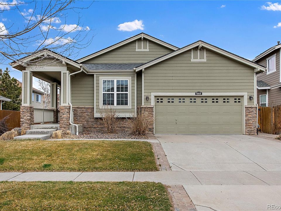 Welcome home to this lovely ranch in the heart of Fronterra Village! This 3 bedroom, 2 bathroom beauty has an open floor plan, vaulted ceilings and lots of natural light! In the living room enjoy the gas fireplace during the winter months. During the summer you can enjoy the nicely landscaped backyard with a deck, patio and soothing water feature! This home also features a huge unfinished basement that is waiting for your final touches to make it yours!