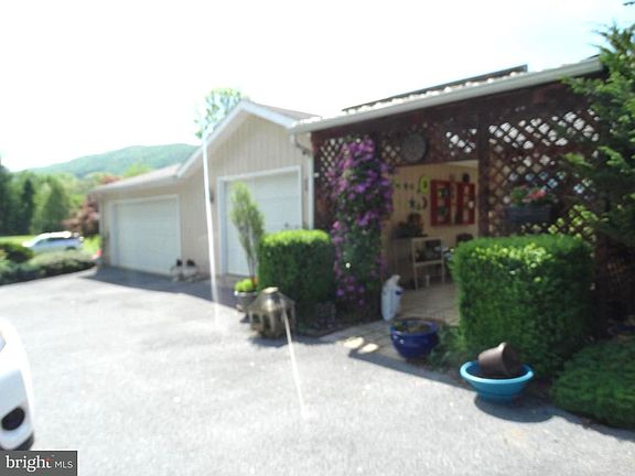 Country living close to the mountains. Newer Shingled roof, newer water heater, public sewer, well with water softener and Reverse Osmosis system. Breezeway between three car garage and home. Black topped driveway. Covered front porch. Additions were built to add a third bedroom, enlarge the living room and add a spacious closet. Pellet stove passes with the sale
