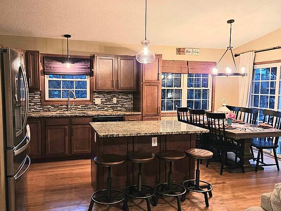 You'll Fall in Love with this Open Floor Plan Concept Kitchen/Dining/Living Room & the NEWLY Remodeled Kitchen including gorgeous Granite countertops (not commonly found in this price range), newer dark birch cabinets, warm hardwood floors & stainless steel appliances! The main floor is adorned by natural light from newer white colonial vinyl windows & patio door! A terrific convenient location, saving time & money, within walking distance to elementary, middle & high schools! This home can accommodate many people as it has 5 bedrooms, 2 baths & a 2 car attached garage with corrugated steel on the walls, makes for terrific outdoor parties! Plenty of rooms for Guests & office space! You can feel the love in this home, as soon as you enter it has a homey feel, from the wrought iron on the banister to the open concept. Have FUN in the SUN grilling out on the composite deck, or cooling off in the large above ground pool, great for summer heat! (pool can stay or go). New roof too!