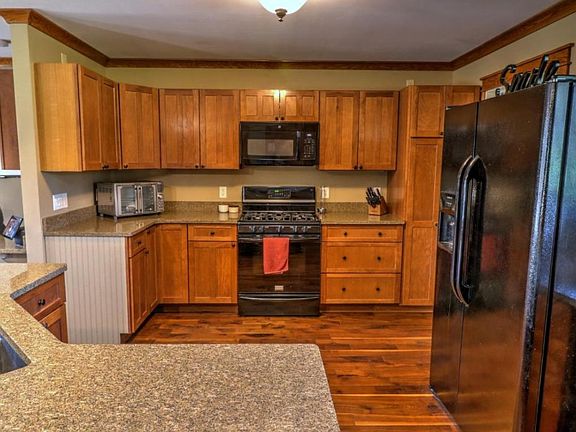 Welcome to 987 Academy St, a lovely 1998 home situated on 6.55 acres of land. This serene property offers a comfortable pastoral setting, ideal for relaxation away from the hustle and bustle. Includes 4 bedrooms and 3 baths (public information indicates 3/2) in a ranch-style home boasting a 2 car attached heated garage, a spacious back deck, and a cozy fireplace in the living room. Many other upscale features include a Buderus heat and hot water system, central vacuum, custom cherry hardwood and ceramic tile floors, granite countertops, Anderson windows, and spray foam insulation. The first floor living area provides ample room for everyday living, while the finished basement offers an additional 1,000 sq ft of space for recreation or relaxation. The owner's bedroom suite also features a walk-in closet and a relaxing jacuzzi tub. Public water is connected. If you're looking for a comfortable and private place to call home, look no further! Schedule your visit today.