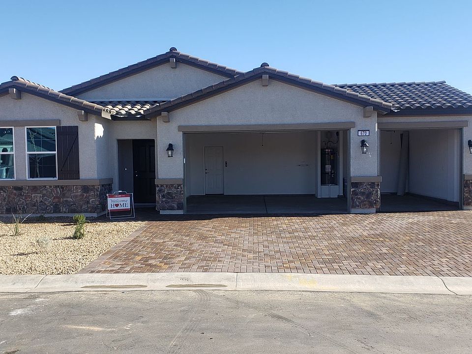 Quick move-in on New Construction!! Best-Selling Spring model with 3 car garage!! 3 bedroom, 2 bath. Over $56,0000 in upgrades!! Including 42" upper cabinets, Quartz counter tops and upgraded flooring. Shadow Crest is a brand new +55 gated community of single story homes. Conveniently located between Conestoga and Falcon Ridge Golf Clubs here in Mesquite. Beazer offers Choice Plans, Mortgage Choice & Surprising Performance Homes. 10 Year Structural Warranty. Please note that the photo is not the actual home but has similar exterior. Construction to be completed by the end of February.