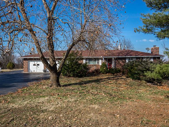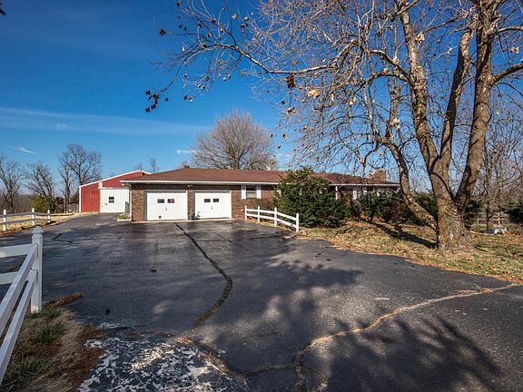 This welcoming all brick 3 bed/2 bath home sits on a sweeping 12.23 acre farm located just 20 minutes from Springfield! The home greets you w/ country charm, landscaping, & scenic views. Walk through the front door into the living room w/ wood laminate floors & expansive window for ample natural light. The dining area w/ hardwood floors & access to the back deck leads directly into the kitchen offering ample cabinet space w/ vast counters & seating area. The bedrooms are all spacious. Walk downstairs to the full, finished walkout basement featuring stone fireplace w/ wood mantle, additional bedrooms, & 2nd bathroom. Head outside to the back deck that overlooks the beautiful property that is cattle tight w/ wet weather creek, 4 outbuildings including a shop & horse barn, and more!