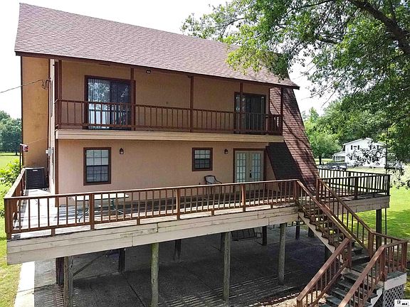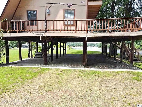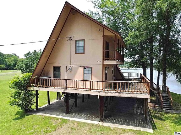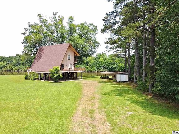 Darling home or weekend get~a~way!! The city is Columbia but it is in Ouachita parish on the Ouachita River!! You’ve got to come check out this A~frame style house sitting on a beautiful lot on the Ouachita river. Walk up the steps up onto your balcony\porch. Sit down in your chair and let the world go by.. you will have a front seat to one of nature’s beauties. Open floor plan, with a large kitchen with nice appliances, including a stove which also has a built in grill, open living area, with vaulted ceilings, large windows overlooking the water, 3 nice size bedrooms, and 2 bathrooms, a half bath and a second living room area upstairs that has a higher view overlooking the water. This is gonna be the ultimate hang out place here!! It has a large bedroom as well and bathroom upstairs with two sliding doors that walk out onto the second balcony. Don’t worry about having to bring groceries up the steps, you have your own crane with a basket to bring them up for you!! Grab your checkbook, and a fishing pole you’re gonna wanna make an offer on this place!! Buyers home did not sell so couldn’t purchase. Let’s go look!!!