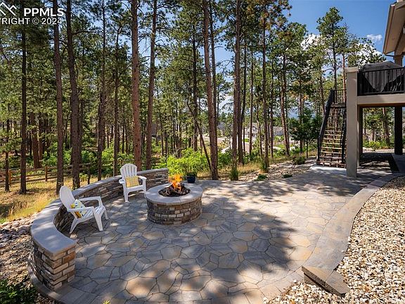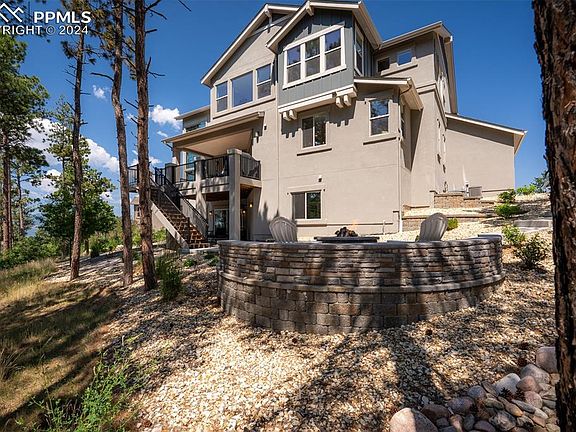 One of the Best Lots in Sanctuary Point! Fantastic 5 Bed 4 Bath home Perfectly positioned amongst trees still allowing beautiful views. Large lot backs to hiking trail offering more space and privacy. The gourmet kitchen with large bar style Island, walk through Pantry and extra counter space offers plenty of seating with room for eat-in style dining. A separate room could be a formal Dining area and there is additional seating on the walkout deck from the kitchen/dining area with a nice amount of the deck being covered. The Large windows in the living area offer amble light and beautiful treed views, peek-a-boo mountains and beautiful sunsets. The double mud-room area offers plenty of organizing for all the various items of a busy household. The main level office with French doors is large enough for 2 office spaces or sitting area. Upstairs has a large loft area, 2 bedrooms joined by a double vanity bathroom with separated shower door, a laundry room and the Primary suite. The Master Suite has a large sitting area, two large walk-in closets and a large bathroom with separate vanities and large stand alone tub and spa shower. The walkout basement offers a large recreation area, with a fireplace, a bathroom with separated shower area and two nice size bedrooms with walk-in closets. The back yard is very nicely landscaped with a fire-pit area with stone wall seating and has a natural setting with treed area offering low Maintnance. The community park has many appealing features with a large turf area, playground and restroom facilities. Easy access to I-25 and Hwy-83, Denver, DIA, Air Force Academy and Local Shopping.