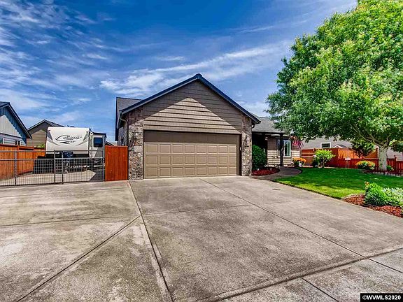 Accepted Offer with Contingencies. If you are looking for a home to park your RV and to be minutes from Salem, this home is it. Open floor plan, with vaulted ceiling, 3 Bedroom, 2 Full Bath, gas fireplace, forced air with A/C, comes with washer/drier and refrigerator. Fully covered patio, which is excellent for entertaining. Garden shed included. Home has an amazing outbuilding created for a separate workshop. Air Compressor included. This stunning home is a must see and will go fast.