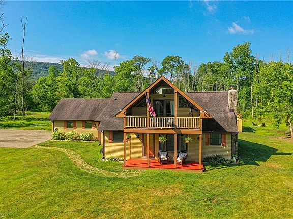 Living is easy in this freshly painted custom built chalet style home that exudes a warm and inviting farmhouse feel. This picturesque Hunterdon County lot with meandering mountain spring fed stream offers over 5 acres of scenic privacy that boarders the designated national scenic Musconetcong River. The first floor bathroom and bedroom with built-in shelving provides flexibility of use. A gorgeous fieldstone wall accents a wood burning fireplace in a spacious living room. French doors lead to a breezeway style covered patio that overlooks wildlife all around. Heart pine wide plank floors & exposed beams expand throughout the home. The eat in kitchen has top tier granite counters. A sun filled owner's bedroom features vaulted ceilings, skylight, an additional room that can be used an an office or 4th bedroom, & French doors open to a covered balcony. Sought after Hunterdon County schools, 16x20 shed w/ 100 amps, new Furnace, HW heater, & generator transfer switch.