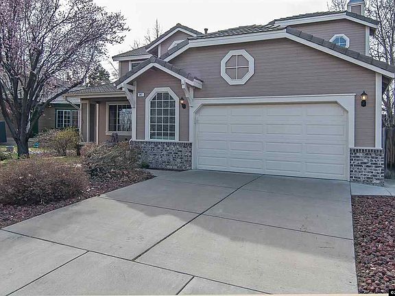 This charming 4-bedroom home in one of Reno's most desirable locations near Bartley Ranch features a spacious entry with lofty ceilings, wood and tile flooring, and an expansive living room and dining room. With upgraded appliances, the kitchen offers a breakfast bar and nook that adjoins a large family room with a wood-burning fireplace! Through French doors, the kitchen area opens to an inviting, private backyard. The garage offers "extra" room with storage, cabinets, and a work bench!