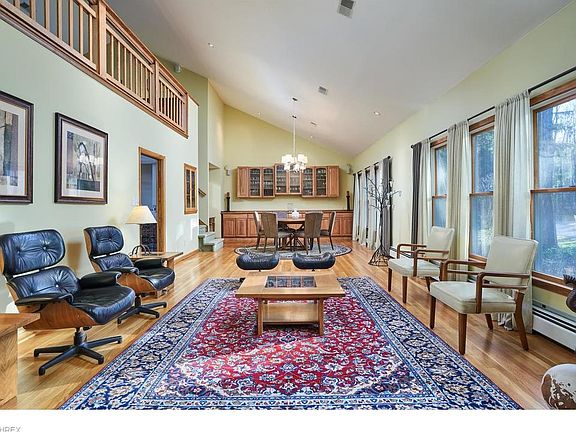 Welcome to 987 N Hametown Rd. This beautifully crafted home is situated on just under 4 acres in Bath! Walk through the two story foyer with slate floors and through the glass pocket doors into the living room which leads to the open dining area with a view of the second floor loft. Formal dining room features cathedral ceiling as well as a full wall of maple built-ins. Walk upstairs to the open loft with newer Anderson windows and attached media/theater room with audio system (through entire home). Going back down into the kitchen you will find new granite counter tops, newer stainless steel appliances, double ovens, two sinks and large walk-in pantry. First floor laundry off of kitchen along with the door to the garage. The great room has a vaulted ceiling, windows from floor to ceiling, tons of natural light, incredible views, and Brazilian cherry floors. The screened-in porch leads to the deck which is perfect for entertaining! Walk up the second staircase where you will find another media room/library with more fantastic views and leads you into the spacious master bedroom with master bathroom and walk-in closet. Lower level offers another living area, perfect for an in-law suite with full kitchen, bathroom, laundry, bedroom and separate entrance. The barn has a separate drive leading down to it and has three stalls. This property is a must see! Call today!!