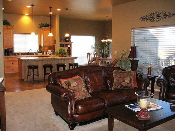 Incredible views to Smith Rocks, Ochoco Mtns & Powell Butte w/city lights! Beautifully updated in 2007 w/designer paint colors, granite tiled island & counter tops w/tile back splash, tiled floor in kitchen & DR, floor to ceiling stone FP with deluxe built-ins on either side. New lighting fixtures throughout the home, luxurious master w/views, dbl vanities, jetted tub, large walk in closet. Office w/French doors. Great room plan w/good bdrm separation. Over sized dbl garage w/dog run. Storage underneath home.