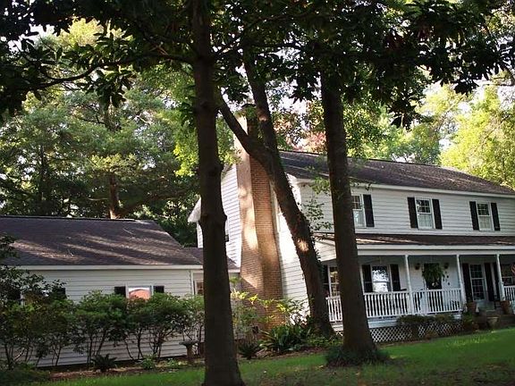 Captivating Low Country beauty! Picture yourself enjoying evenings on the huge front porch, outside in the lush back yard, taking long walks in the "forest" or snuggled by the brick hearth fireplace in this immaculate home. The knotty pine hardwood floors throughout the main living areas are simply gorgeous. The spacious kitchen opens to a formal dining room and the breakfast room. The living room has a brick fireplace and built in bookshelves. Many custom features add to the warmth and comfort of the home. There is a large office and a screened porch that opens to the patio and landscaped back yard. All four bedrooms are good sized. The garage has been converted to a spacious "man cave" complete with air conditioning and cable TV. This room can easily be converted back to a garage if preferred.
