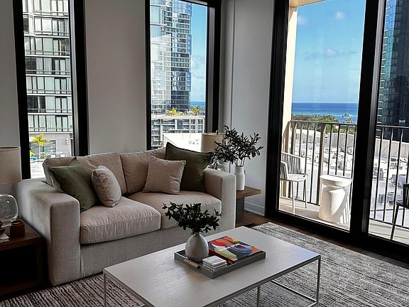Fully furnished, move-in ready with furniture, kitchen utensils, even sheets and towels - all you need is your personal belongings. Spectacular ocean views from all rooms. Less than 2 years old. High Speed Internet at 500bps, All utilities except electricity is included. Comes with 1 parking spot. World class amenities - 42nd floor rooftop deck , gym, yoga studio, multiple event cabanas, pool, hot tub, grills, this building comes with the works! A'ali'i, embodies creative, contemporary, elegant finishes, and cutting-edge Bosch appliances. Penthouse-level amenities on Lanai 42, a full-floor oasis for relaxing and socializing, provide gorgeous 360 views of land and sea and a state-of-the-art fitness center. Located in the center of Ward Village, 'A'ali'i provides immediate access to a vibrant, planned walkable neighborhood, world-renowned restaurants, unique local retailers, state-of- the-art movie theaters, Whole Foods market a block away, and free community events. 90 day minimum lease Owner pays for all utilities except electricity Tenant pays electricity and GET fees Tenant must comply with all HOA regulations $300 non refundable cleaning fee, $250 additional pet fee if applicable.