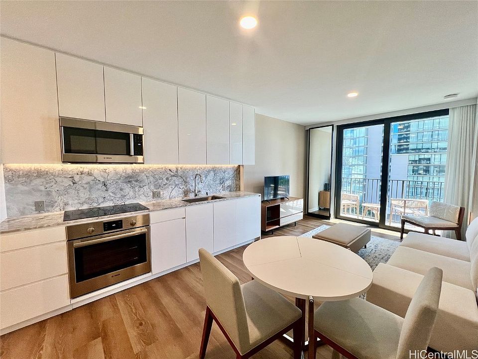 Elegantly designed by Soloman Cordwell Buenz architects with Rottet Studio (interior designers of Four Seasons), stepping into A'ali'i is like stepping into a 5 star hotel. Located in the heart of Kaka'ako, with Whole Foods Market, numerous shopping and dining venues, and Ala Moana beach all within walking distance, this modern residence has a large pool deck with multiple cabana and grilling areas and party rooms. The rooftop "Lanai" on the 42nd floor, boasts Sky Lounge, event space, private dining room, fitness center with sweeping ocean and city views! This is a fully furnished Studio. Enjoy the ocean view from the lanai!