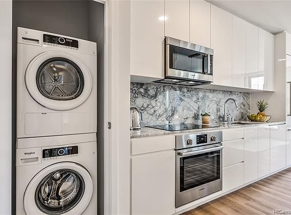 This gorgeous brand-new high floor residence is fully furnished with the developer's original Turn-Key Package! Enjoy cool breezes, panoramic mountains and city views. Fresh vibrant interior features contemporary elegant finishes throughout. Natural stone countertops with full-height backsplashes, Bosch kitchen appliances, beautiful flooring in the living room, walk-in closet in the bedroom. Two Storage lockers behind the unit's parking stall, upgraded with its own EV Outlet, and an additional spacious walk-in storage approx. 44 sq. ft. all on level 6 conveniently located near the elevators. Stylish amenities include a rooftop Sky deck with breathtaking ocean view, fitness center, resort style pools, jacuzzi, private cabanas, BBQ areas, indoor/outdoor lounge, dog park, children's play area and more. Close to the Whole Foods market, restaurants, shops, parks, Kewalo boat harbor and Ala Moana Beach. 2023-02-07