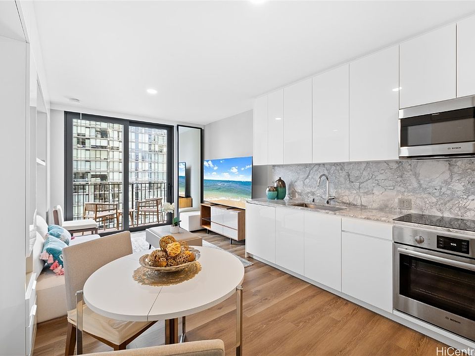 Affordable luxury condo nestled in the vibrant Ward Village community. The unit comes with deeded storage (S3-011). Enjoy breathtaking ocean views from your fully furnished unit. A'ali'i features two extraordinary amenity areas, catering to every lifestyle. The top-floor Lanai 42 offers a state-of-the-art fitness center, a sky lounge with panoramic views, a serene yoga room, and versatile spaces ideal for entertaining or remote work. The 8th-floor amenity deck features multiple cabanas, private indoor/outdoor dining areas, barbecue stations, a refreshing pool, a soothing hot tub whirlpool, a children's pool, and a playful playground. Immerse yourself in the vibrant lifestyle of Ward Village, with restaurants, spas, coffee shops, a dog park, and Ala Moana Beach just steps from your lobby. Elevate your lifestyle with the best of entry-level luxury living at A'ali'i, the heart of Ward Village.