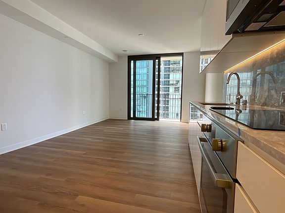 Inside, the unit features luxury vinyl flooring, marble countertops, and top-of-the-line Bosch stainless steel kitchen appliances, including a dishwasher. Enjoy the convenience of secured parking with an EV charging station, plus 24/7 concierge services and on-site security for your peace of mind.