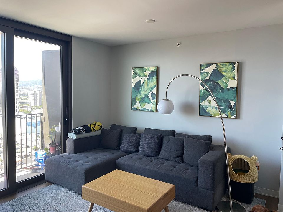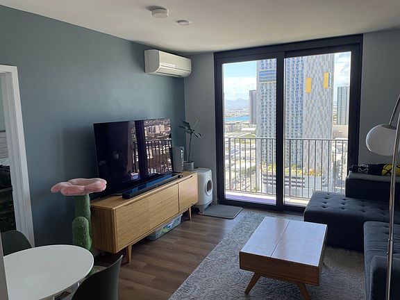 This is a FURNISHED 1 bedroom 1 bathroom apartment with a lanai on 26th floor with ocean view, located in Aalii - Ward village, 2 min walking distance to whole foods, movie theaters, restaurants, coffee shops. 5 min walk to beach park, ala moana shopping center. Building has a gym, event rooms for reservation, pool, jacuzzi, bbq grills free to use. I currently have furnitures in here, renting with it furnished. Pets negotiable, depend on how well trained pets are. Building has a pet grooming room, fenced dog park and this is a great community for dogs. This unit comes with 1 parking, extra parking can be rented from other people in the building if needed. Extra storage unit on top of the parking space in the garage. Renter insurances in required to be in this unit. All utilities are included except Electricity. Stackable washer and dryer in unit. 1 year rent minimum.