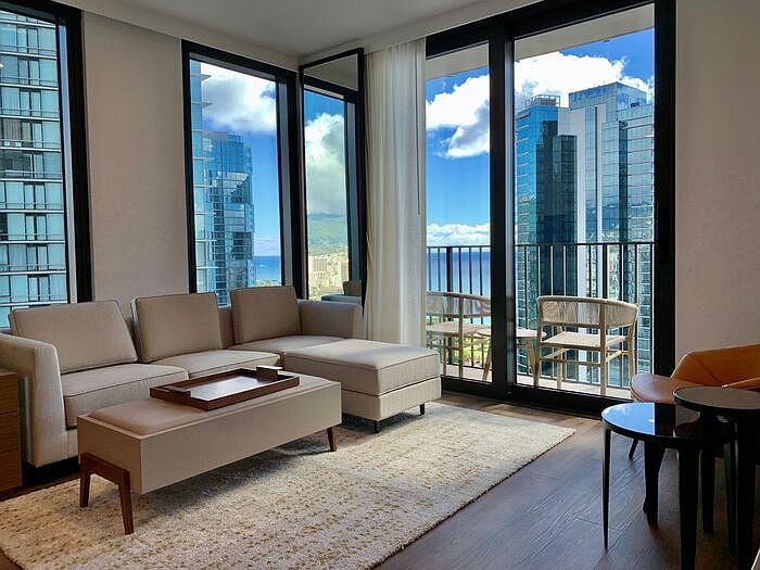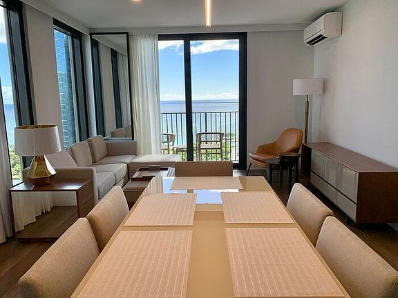 New and beautifully furnished 2 bed, 2 bath condo in Kakaako with 2 parking spaces on the 27th floor! A'ali'i is the new hip and modern building in the Ward Village community. Unit features white acrylic cabinets with built in refrigerator, quartz counters, vinyl planks, split ACs, and high end furnishings and items. Corner unit has amazing ocean view and balcony. Experience hotel amenities including an infinity pool, roof top gym and lounge area, cabanas, multiple bbq pits, and party rooms galore. Located in the walkable Kakaako area, and in the middle of Ward Village with Whole Foods across the street. Available for immediate occupancy. Water, sewer, trash, and internet included. Sorry, no pets! Renter's or Liability to Landlord insurance required. $10 application fee Rental Terms: Rent: $4,800, Application Fee: $10, Security Deposit: $4,800, Available Now Pet Policy: Cats not allowed, Dogs not allowed Contact us to schedule a showing.