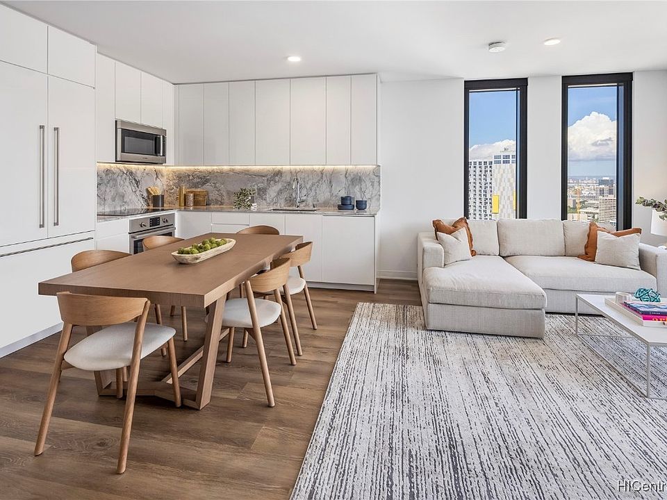 This unit is sold fully furnished with all accessories. 'A'ali'i, designed by Solomon Cordwell Buenz architects with Rottet Studio, embodies creative, contemporary, elegant finishes, and cutting-edge Bosch appliances. Penthouse-level amenities on Lanai 42, a full-floor oasis for relaxing and socializing, provide gorgeous 360° views of land and sea and a state-of-the-art fitness center. Located in the center of Ward Village, 'A'ali'i provides immediate access to a vibrant, planned walkable neighborhood, world-renowned restaurants, unique local retailers, state-of- the-art movie theaters, a flagship market, and free community events.
