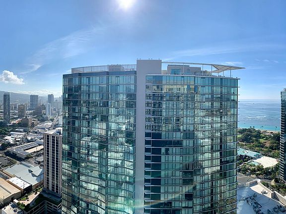 Ocean view condo in Kakaako with 1 parking space high on the 40th floor! A'ali'i is the new hip and modern building in the Ward Village community. Unit features white acrylic cabinets with built in refrigerator, quartz counters, vinyl planks, split ACs, and high end furnishings and items. Amazing ocean to moutain views from the balcony. Experience hotel amenities including an infinity pool, roof top gym and lounge area, cabanas, multiple bbq pits, and party rooms galore. Located in the walkable Kakaako area, and in the middle of Ward Village with Whole Foods across the street. Available for immediate occupancy. Water, sewer, trash, and internet included. Sorry, no pets! Renter's or Liability to Landlord insurance required. $10 application fee *Please allow for text notifications from Rently for showings