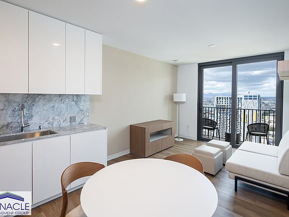 Brand new furnished penthouse studio in the luxurious Aalii in Kakaako. Efficient layout with designer furnishings and stunning wrap-around views of the ocean, city, and mountain. Central AC and washer/dryer inside unit. Includes 1 pkg stall. Nice amenities featuring an infinity pool, private cabana, BBQ area, fitness center, and meeting areas. Prime location in Kakaako close to Whole Foods, Ala Moana Beach and shopping center, Waikiki, and restaurants. No pets. NO VIRTUAL SHOWINGS. MUST VIEW IN PERSON BEFORE APPLYING. VIEWING MUST BE SCHEDULED ONLINE.