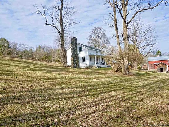This quintessential upstate NY farmhouse is sited on 11+ meadowed acres and is set back from a windy country road. The assemblage of house, significant barn, bunkhouse, other smaller outbuildings and vistas presents a picture of rural living the way it enjoyed long ago. A substantial stone fireplace anchors the pine-paneled living room, which has built in seating, wide-board floors, beamed ceilings and windows on three sides, making it a bright and inviting space. The original floors and beams flow through to the well-proportioned dining room, which then opens to the most charming vintage kitchen. Three comfortable second-floor bedrooms are crisp and bright. A delightful wrap-around covered porch surrounds two sides of the house and provides a serene place from which to enjoy the bucolic acreage. The classic two-story red barn is sturdy and massive and encompasses various workspaces; there's already electric service in place so it's ready to be used for whatever your imagination can conjure. The bunkhouse is an ideal spot for play or work, and the other small outbuildings can potentially be put to use or enjoyed just as they are.