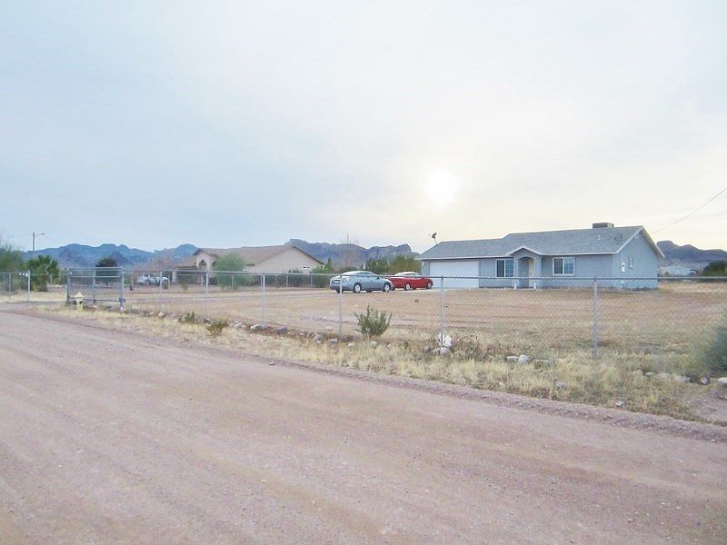 Built in 2001 this all electric 2 bedroom 1 bath home has some nice lines, pots shelves, fans throughout, alarm system, walk in closet, pantry, eat in kitchen and slider to the rear covered patio. Attached 2 car garage with auto door opener, filtration system and updated washer, dryer, fridge, water heater and air conditioning unit. Sitting on a fully fenced 1 acre lot with great views, plenty of room for RV parking and horses are OK too. 987 S. Escuela Rd. Golden ValleyHighway 68, South on paved Estrella, right on Redwall first street right is Escuela, second home on the left.Kathy Ortman.com RE/MAX Prestige Properties 928.530.5360 I Love Working Nights & Weekends