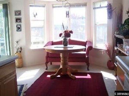 VAULTED CEILINGS IN LIVING ROOM AND DINING AREA. BAY WINDOW FOR DINING AREA AND MASTER BEDROOM HAS BAY WINDOW. CENTRAL AIR. BACK PATIO EXTENDS ALMOST FULL LENGTH OF HOUSE. ONE BEDROOM IN BACK HAS SLIDING DOOR TO PATIO. NICE COMFY HOME IN GOOD CONDITION.