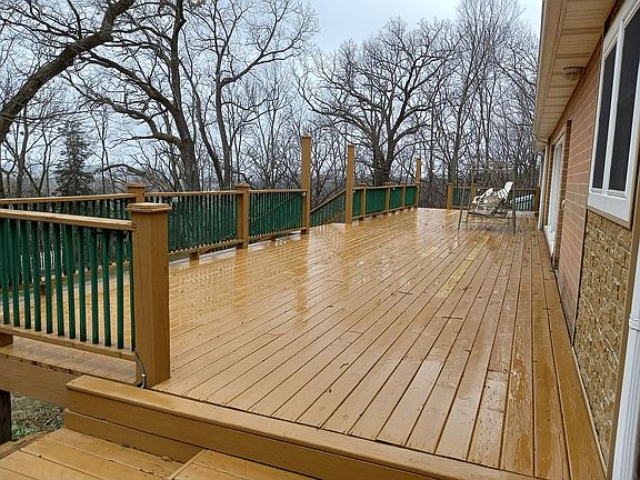 Beautiful 3 bdrm 2 full bath newly remolded brick home located on one acre with beautiful view and surrounded on 3 sides by apx 10 acres of forest preserve to enjoy. Single Family Ranch One Story; Detached Garage 576 Sq Ft. constructed on site, insulated. House Est. Sq. Feet: 1790 One Stone Fireplace in Living room with High Efficacy Sealed Wood Insert Stove; One Free Standing Wood Stove in family room with stainless steel chimney Natural Gas Furnace Architectural Shingles This peaceful private location features a beautiful view of the valley to the south, and private wooded country setting, located 2 minutes from town. Beautiful mature oak and walnut trees are throughout the property. A large south deck extends the length of the house (1,120 Sq. Ft.) providing a fully private view overlooking the south valley. The house is located on a long ridge over-looking the country side to the west of the city of Oregon. Three large picture windows in living room provide a beautiful and peaceful view overlooking the valley. Lot size of our home and the empty lot in front of the home provides a spacious buffer from the only two neighboring homes. Being on higher elevation there is no flooding risk. Home has had many recent upgrades such a newer roof, new plumbing throughout kitchen and both bathrooms and laundry, new bathroom, new garage, new windows, new great room flooring, new kitchen, etc. Our family has enjoyed the property for 26 years. We have especially enjoyed the private county setting while being so close to town, the beautiful view, variety of blooming flowers and trees, and variety of deer and wildlife the property provides. Property type: Very private wooded lot surrounded on 3 sides by a forest preserve that is not developed. Just outside the city limits on a state route provides quick, easy access for travel, yet removed from any highway noise. All New Windows All new pipes and plumbing through kitchen, 2 bathrooms, laundry New Toilet West Side New Septic Line West Side New Exterior Fire Pit Landscape New Kitchen (New: insulated walls; plumbing; laminate counter top, cabinets, light fixtures) New Kitchen & Living Room Flooring New Dishwasher, Kitchen Faucet New Garage/living space with loft 16 x 36 New Roof 25yr Architectural Shingles (good for 17 more years) New Insulated Walls East Bedrooms Exterior Deck full length of home (70 x 16 = 1,120 Sq. ft.) Extended Deck Landing (8 x 8 = 64 Sq. Ft) Pool Deck and Steps (16x 8 = 128 Sq. Ft) New Bathtub Surround Free standing Wood Stove & Stainless Steel Chimney Additional Attic Insulation Nov. 2010 New Water Heater March 2006 Sealed high efficacy wood Insert & chimney liner New Well Bladder Pressure Tank/ New Plumbing Parts New 223 ft. Tubing & Wiring for Water Well Self-contained, self-cleaning septic system