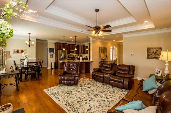 Lovely 4BR/3.5BA ranch style home with over 2800 finished square feet! The home features an open floor plan with a split bedroom design. The kitchen is the center piece with lots of high end cabinets, granite tops, under cabinet lighting, upgraded stainless steel appliances, pantry, bar, and a breakfast area. The kitchen overlooks the living room which includes gleaming hardwood floors, double trey ceilings, and a gas log fireplace with custom mantel. The master suite has a trey ceiling, hardwood flooring, large walk-in closet w/custom shelving, double vanity with granite tops, jacuzzi tub, and separate tile shower. The 2nd & 3rd bedrooms are nice size with ample closet space. The main level is completed with a formal dining room with vaulted ceilings and high-end moldings, grand foyer with lots of natural light, laundry room, powder room, and a oversized 2 car garage. The upstairs bonus room includes a full bathroom and lots of closet space. The bonus room gives you flexibility as it could be used as a den, home office, or 4th bedroom. The 12X16 covered back deck is the ideal place for entertaining or relaxing. The over-sized backyard is private and perfectly level. At the end of the home there is an attached storage building which would also make a perfect workshop. Home has 5" hardwood flooring throughout most of the main level, extensive crown molding throughout, trane heat pump, granite countertops in all bathrooms, pre-wired for security, custom closet shelving throughout, and tons of other high end finishes not usually found in this price range. You wonât find a more convenient location being within walking distance to Ridgeview School and just minutes from Johnson City, Kingsport, I-26, and I-81!