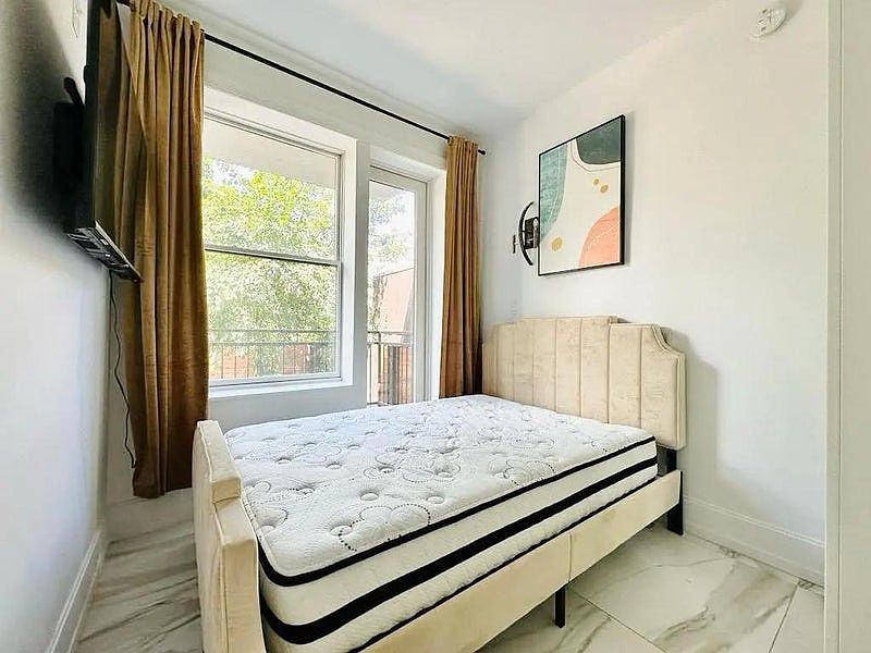 - Furnished room in a 5 bed, 1.5 bath (the half bathroom is private and not available for use), duplex (2 floor) apartment with balcony and AC, 18 min to manhattan, prime Bushwick, brand new luxury building with laundry, gym and rooftop, nice view of the manhattan skyline.