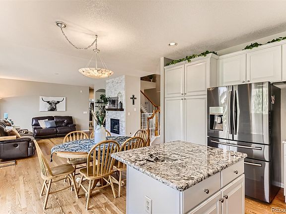 Welcome to this meticulously maintained 5bed, 3ba, 3car garage 2story home*With soaring ceilings and gleaming REAL hardwood floors, this open floor plan is full of natural sunlight and a true pleasure to show*Enter into the formal living and dining area and continue to the beautifully updated kitchen with center island, granite counters, glass tile backsplash, dark stainless appliances include refrigerator, dishwasher, microwave and gas range. The eat-in space is adjacent to a sliding glass door entrance onto the large deck and back yard, with mature landscape it's perfect for entertaining or just relaxing*The kitchen is open to a spacious family room with cozy gas log fireplace*Main floor bedroom and full bath is a nice guest area or office space*Large main floor laundry room with exterior door is convenient for pets or those needing to clean dirty feet before coming inside*Upstairs you'll find the master suite complete with 5pc bath, walk in closet, brand new private deck and a separate bonus room...maybe for a gym, office, nursery, yoga...possibilities are endless*A large loft, two more good size bedrooms and another full bath with double sinks finish out the upper floor*The finished basement includes awesome rec room and a 5th bedroom with attached rough in space for a 4th bathroom*Located at the end of a cul de sac, surrounded by Jeffco open space, you are steps away from trails and just around the block from the neighborhood park, playground and pond*TrailMark is a sought after area only minutes to Chatfield State Park/Reservoir, Botanic Gardens, Deer Creek, Waterton Canyons and includes many fun community events like...Food Truck Thursdays, Easter Egg Hunts, 4th of July Parade, Summer Concerts and Movie Nights in the park just to name a few! Don't miss your opportunity to live in this spectacular home and wonderful neighborhood! Showings begin Friday June 3rd