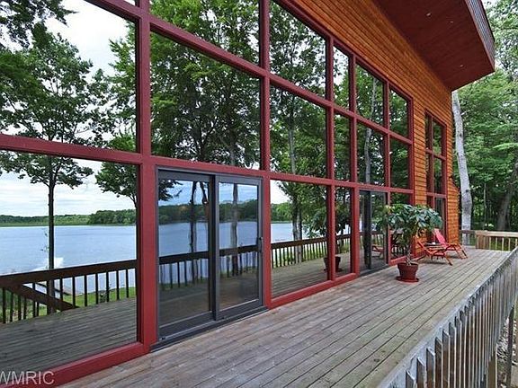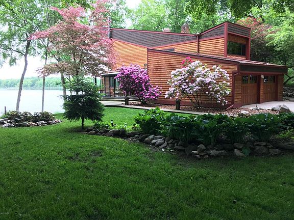 Welcome to Zen on the Lake. This modern mid-century home, designed by Frank Mason is a marvel with over 4,000 square feet, impeccably landscaped and maintained grounds and 181 feet of frontage on the private and serene Cotton Lake. 5.5 acres of open sedge forest round out this rare find. Punctuated by an open floor plan with vaulted ceilings and sweeping lake vistas from the stunning glass-dominant lakeview facade. Hardwood floors, 3-sided great room fireplace, numerous lakeview and open air dining spaces and original wood trim throughout the home. Top of the line Viking kitchen has extensive storage and easy access to multiple dining areas. The open air balcony leads to 3 of the 4 bedrooms. Master bedroom includes private bath, large sitting area or closet, and private lakeview balcony with stairs to the hot tub. Two garages and partially finished basement (incredible entertaining potential) provide expanded storage. Wildlife abounds in this beautiful wooded serenity on the lake!