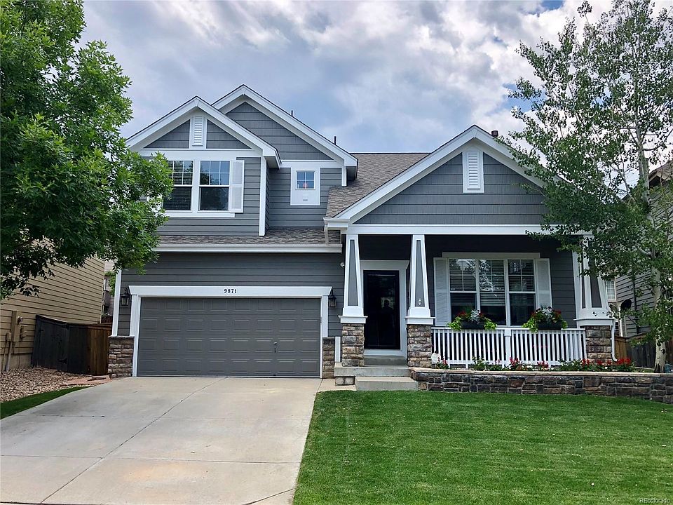 Must See this Updated Ryland Built Home in Stonegate! Gourmet kitchen with Stainless appliances, granite counters, granite backsplash, and gas cooktop. Newer kitchen sink. Recent Updates include Exterior and Interior Paint. Bamboo Floors. Newer carpet. New lighting and Ceiling Fans. New bronze hardware. New baseboards. Wrought Iron Staircase. Updated bathrooms. Updated Tile throughout. 4 Bedrooms upstairs with upstairs laundry room. Finished basement with an extra family room with built in entertainment center. Guest Bedroom and bath, additional study, 6th bedroom, or workout room. Secluded backyard with extended tree deck. Great location. Walk to schools. Easy access to 470, Denver and airport. Great community pools, parks and trails. Bring your buyers.
